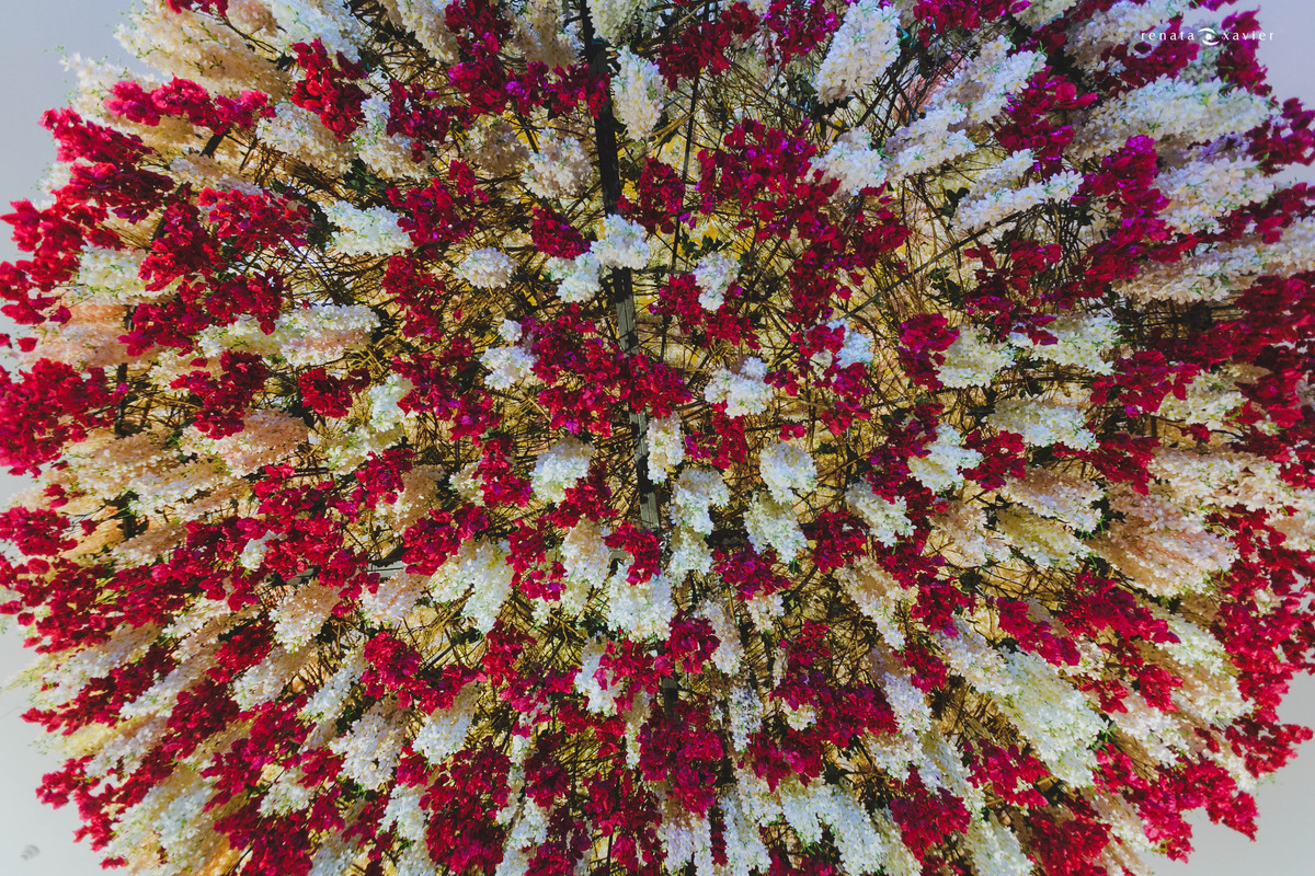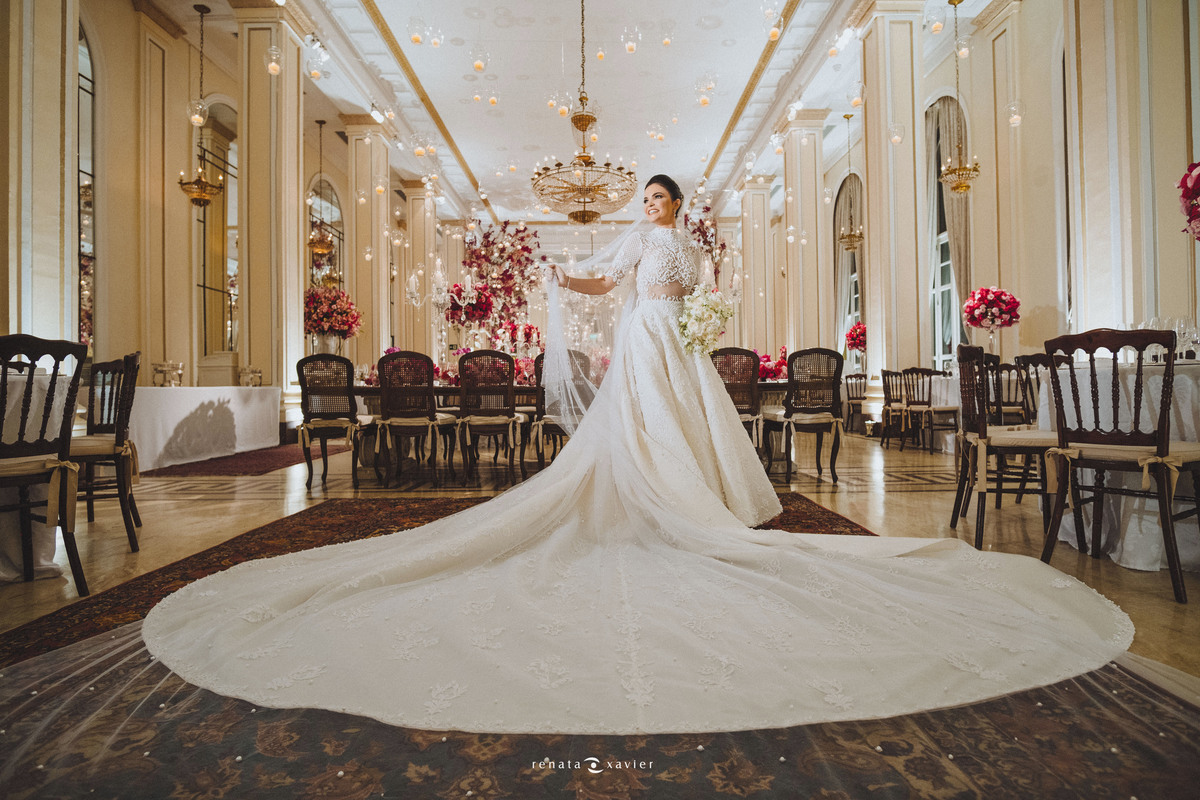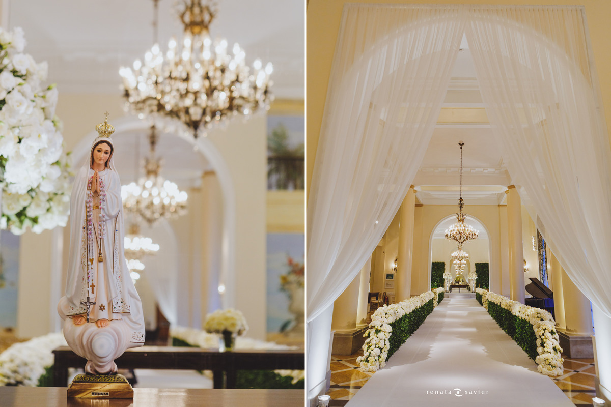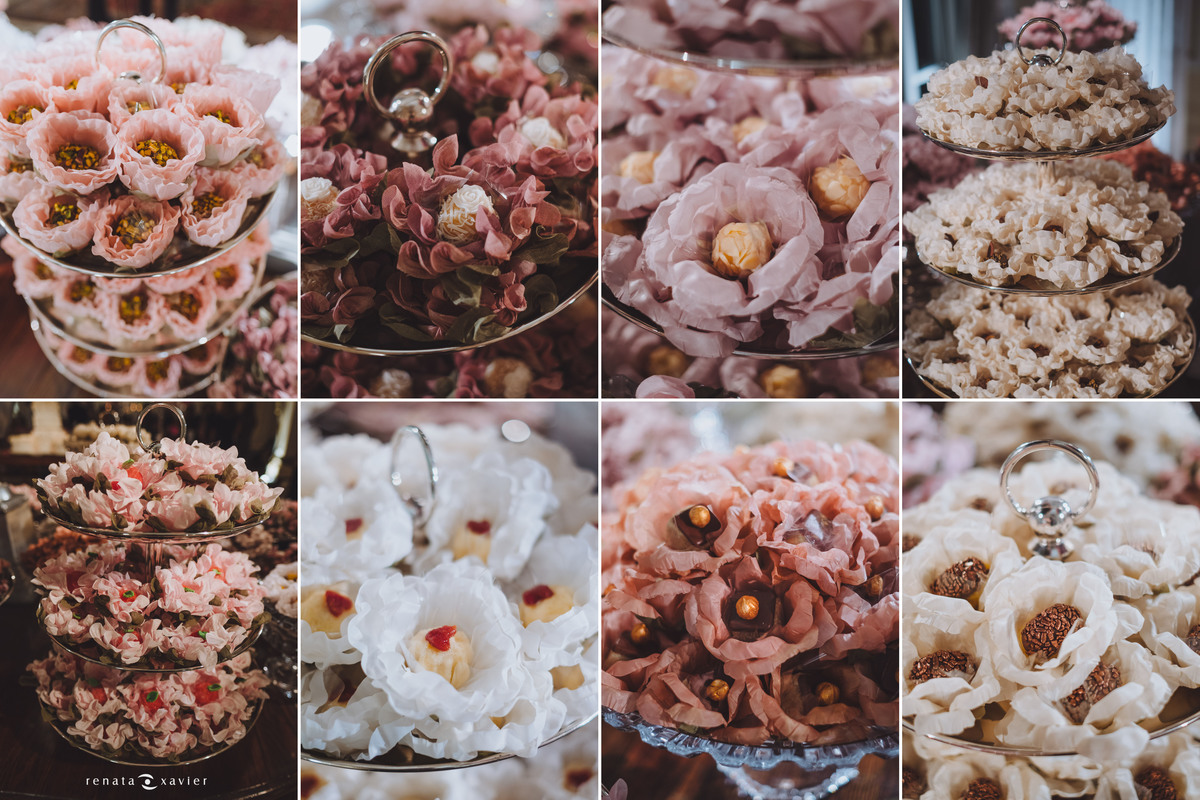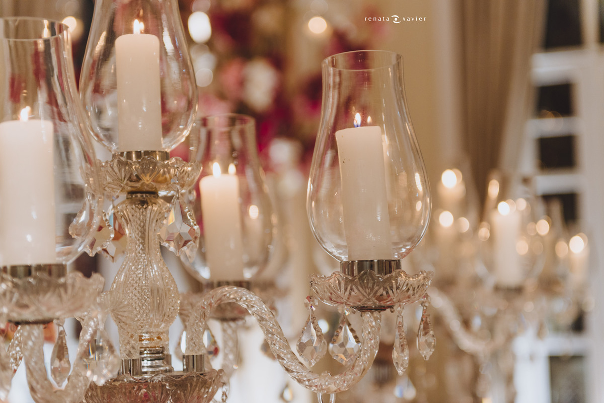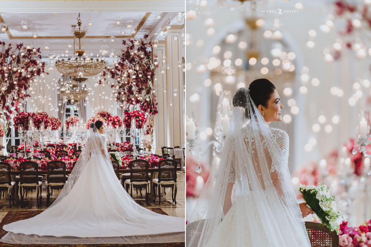 A decoração que o Daniel Cruz fez nos salões do Copacabana Palace estava um escândalo! Nos salões frontais, onde aconteceria a cerimônia, milhares de rosas e lisianthus brancos formavam o caminho dos noivos até o altar. No salão nobre do Copacabana Palace, uma mesa de doces no estilo La Vie en Rose, a mesa de jantar com a guirlanda de flores que ia até o chão. Os tetos estavam repletos de glicinias e bouganvilleas, o ponto alto era o candelabro gigante todo florido em cima do bar no Golden Room... Os convidados suspiravam...
